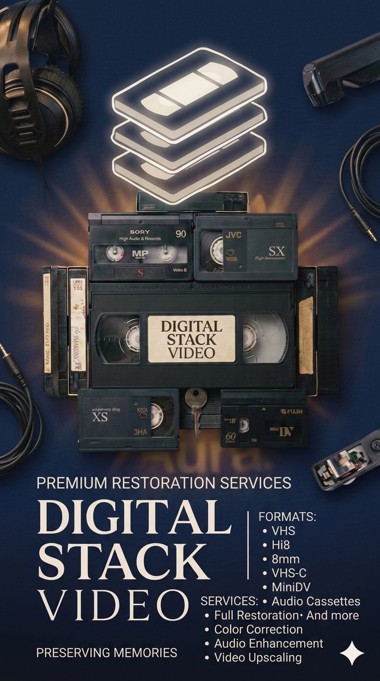 At Digital Stack Video, we provide best-in-class analog to digital conversion and remastering for all your legacy camcorder and VHS tapes. With specialized color restoration and audio enhancement, we transform aging media into high-definition digital files ready for sharing.